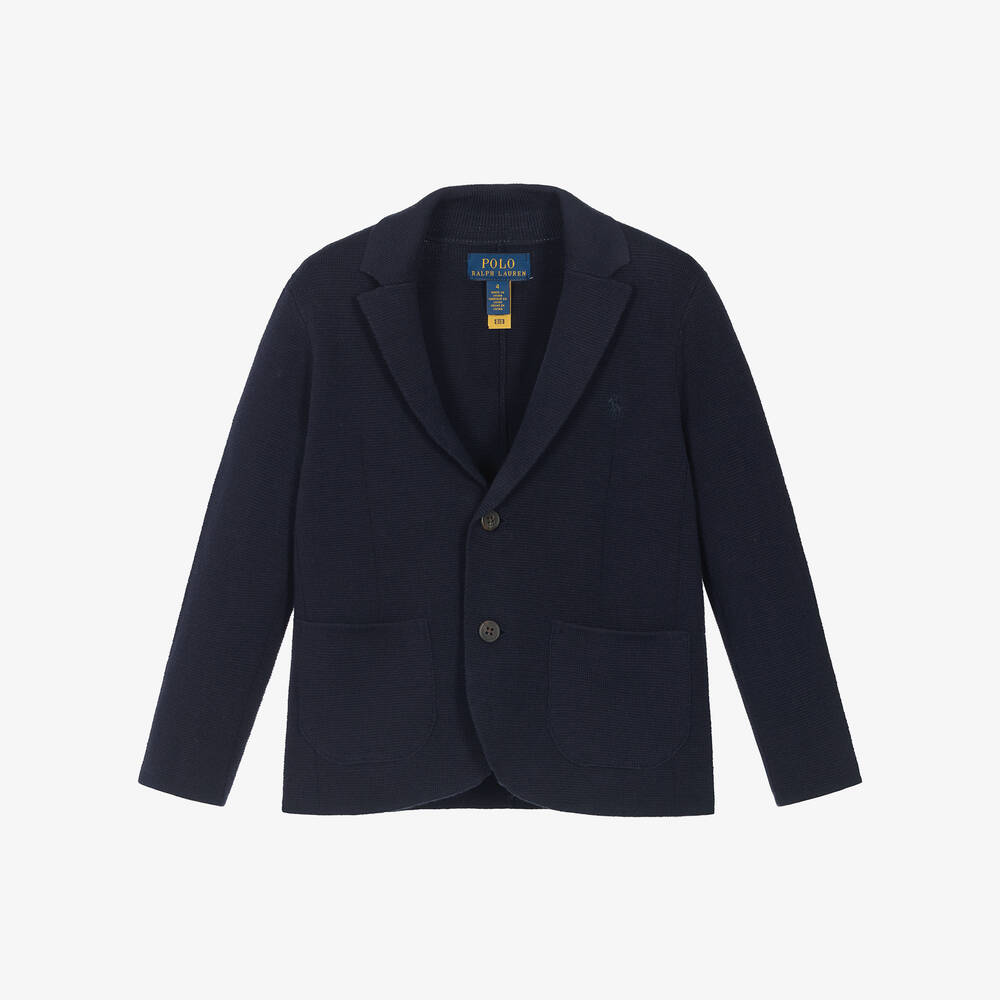 Super comfortable knitted cotton blazer for boys by Ralph Lauren, ideal as an extra layer on cooler days. Slightly fitted, it has smart lapels, useful front pockets and the signature pony logo embroidered on one side.