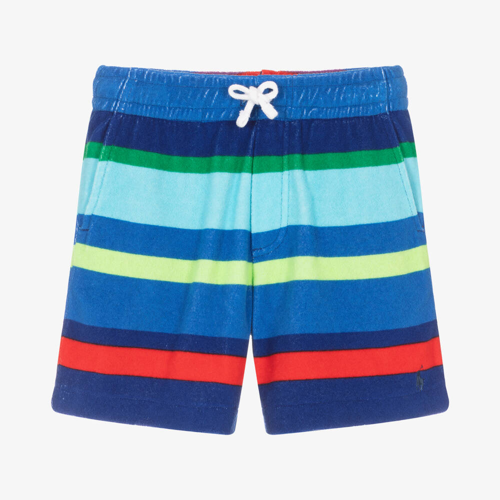 Colourful striped shorts for boys by Ralph Lauren, made in stretch terry towelling. Soft and comfortable, they have an elasticated waist with drawstring ties for an adjustable fit. There are useful slanted pockets on the front.