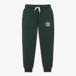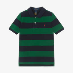 Forest green cotton polo shirt for boys by Ralph Lauren, with iconic Pony logo embroidery on the chest. Made in super soft jersey, this classic style has a ribbed collar, button fastenings, and a sporty split hem.