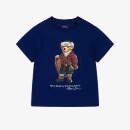 Boys forest green cotton jersey T-shirt by Ralph Lauren, featuring the brand's signature Polo Bear graphic on the front. This casual tee has a classic crew neck and short sleeves, making it ideal for layering or wearing on its own.