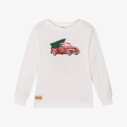 Cosy and festive, this green sweater for boys by Ralph Lauren has a cute ivory reindeer and Christmas tree Fair Isle design. Ideal for the colder months, it is knitted in a soft cotton blend with ribbed trims for an extra warm, snug fit.