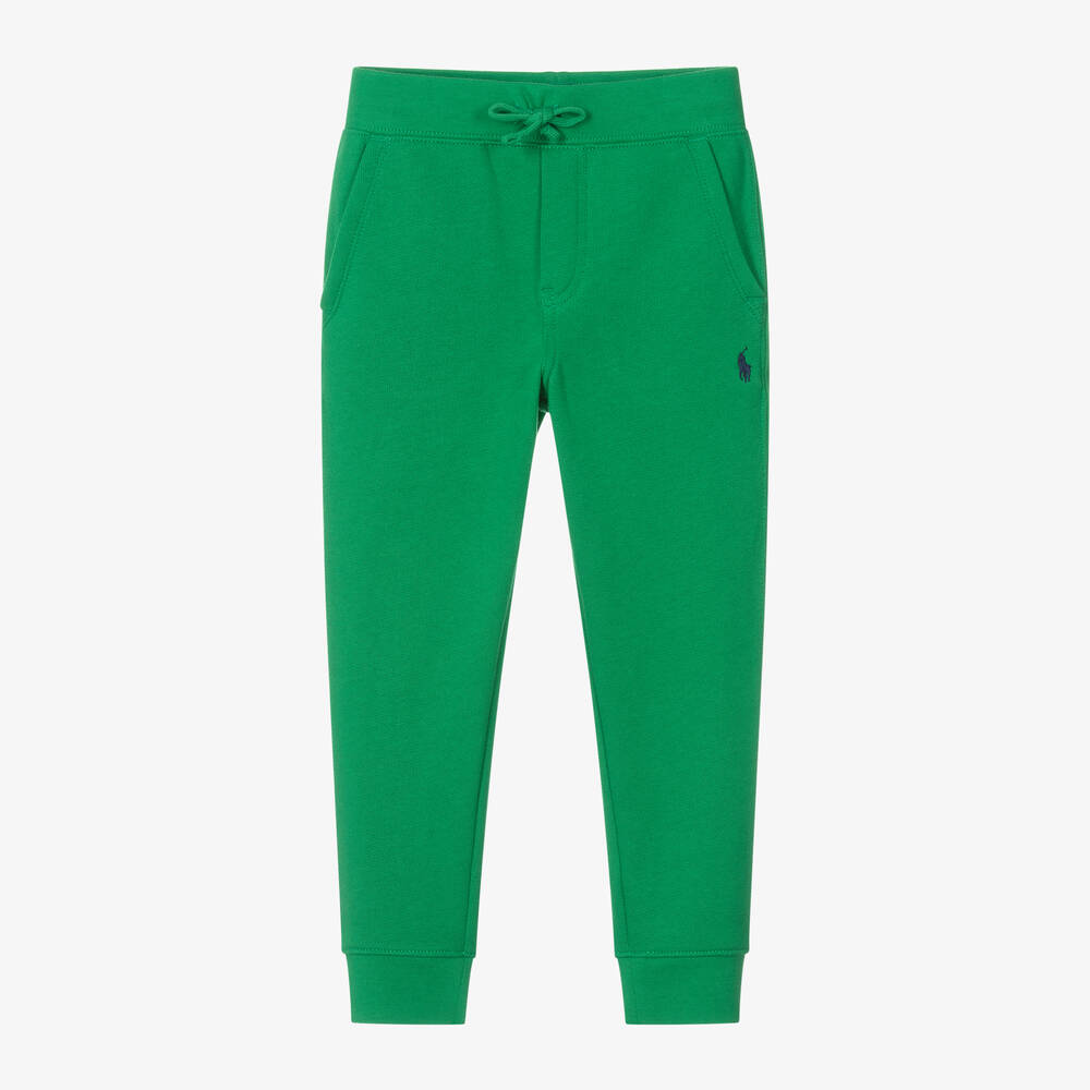 Casual and comfortable for boys, these green cotton-blend joggers are by Ralph Lauren. Made in soft jersey with a cosy fleecy inside, they have an elasticated drawstring waist and slanted front pockets. The designer's signature pony logo embroidered on one side in contrasting blue.
