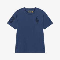 Ivory cotton jersey T-shirt for boys by Ralph Lauren, with the brand's iconic Big Pony logo embroidered on the chest in pale beige. This casual tee has a crew neckline and short sleeves, with a number '3' appliqué on one sleeve adding a sporty touch.