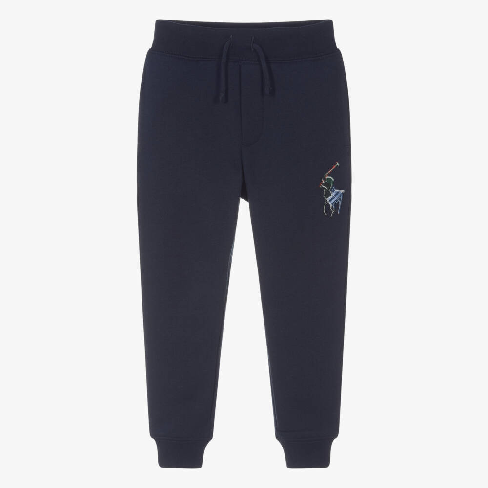 Boys Navy Blue Cotton Big Pony Joggers