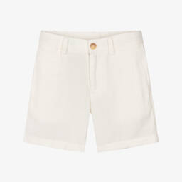 White shorts for boys by Ralph Lauren, made in a comfortable cotton jersey blend. These casual shorts are embroidered with a Polo Ralph Lauren logo below the left pocket. The drawstring waistband ensures a good fit.