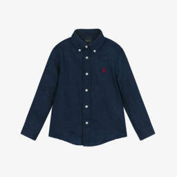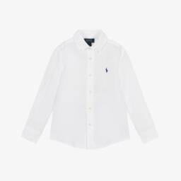 White shirt for boys by Ralph Lauren, made in cool and comfortable linen. It features a smart button-down collar and the brand's small Pony logo embroidered on the chest in navy blue for a signature finish.