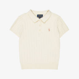 Golden yellow polo shirt for boys by Ralph Lauren, made in comfortable cotton piqué. Front button fastening, it has a ribbed collar and cuffs, with vented sides for ease of movement. The designer's signature pony logo is embroidered on the chest in blue.