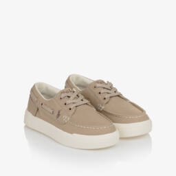 Girls Beige Cotton Ribbed Knit Beanie Hat with Pony Logo Tab