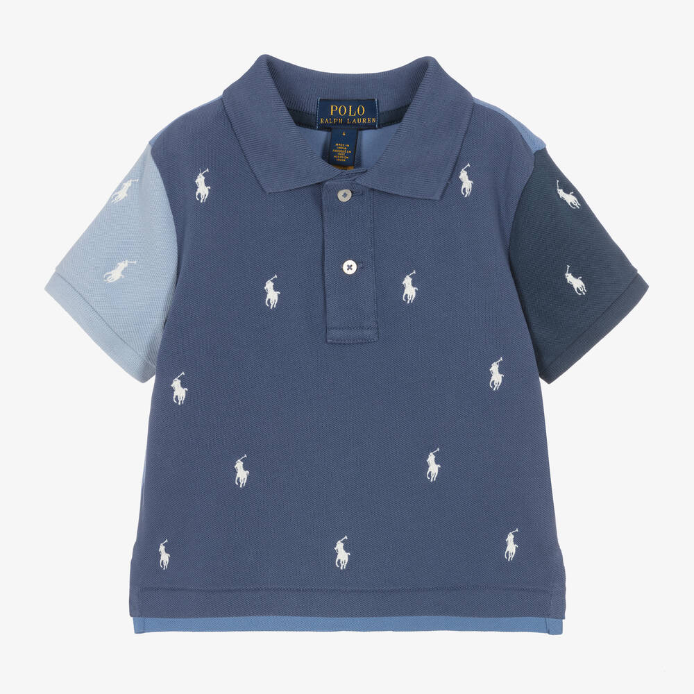 Unmistakably by American brand Ralph Lauren, this blue colourblock polo shirt for girls is embroidered all over with signature pony logos in white. Made in soft cotton piqué, it has a ribbed collar and a short button placket. The sides are vented sides for ease of movement, and the hem is slightly longer at the back.