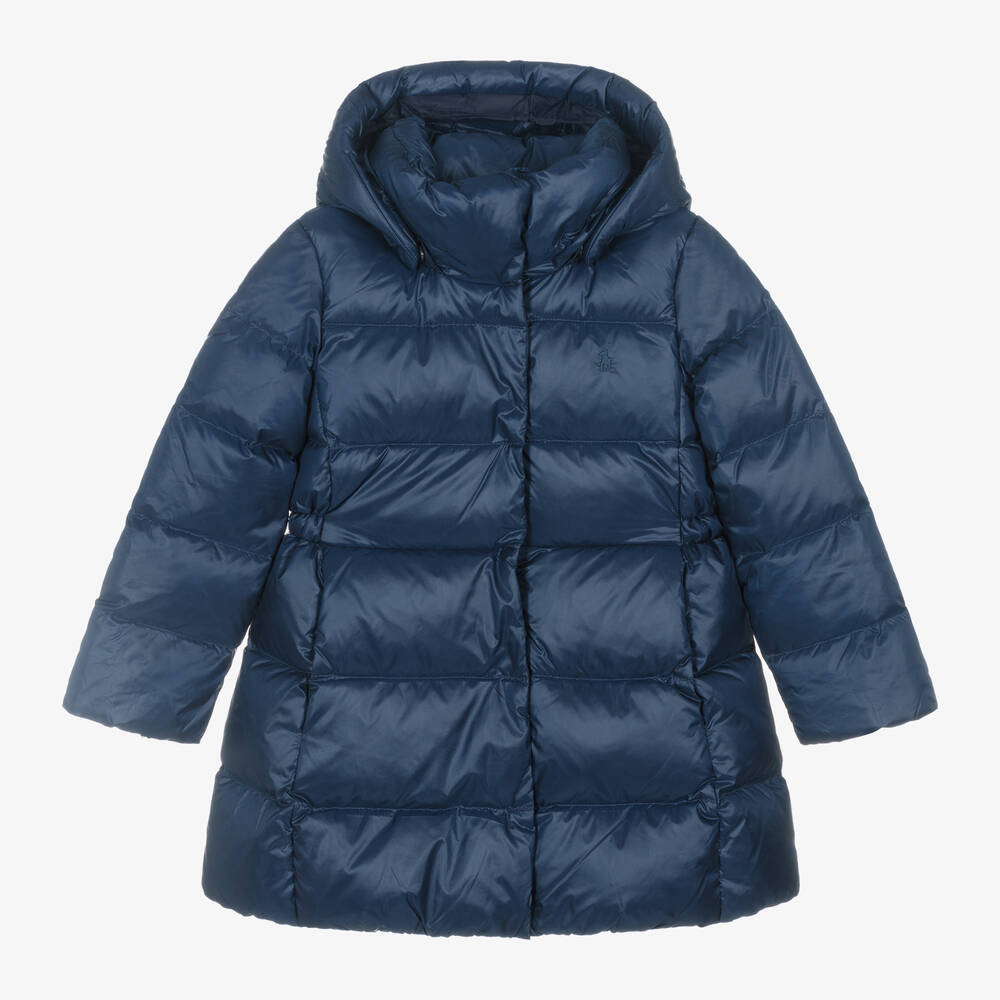A navy blue puffer coat for girls from Ralph Lauren, in a stylish A-line silhouette. Smooth and silky, it is made from recycled materials and padded with down, offering superior warmth and comfort. The water-resistant treatment, fleece-lined popper pockets, and elasticated cuffs ensure she will stay cosy and comfortable. Attaching with poppers, the hood is removable to alternate her look. It fastens with an easy-to-use zip and poppers for quick dressing. Signature pony logo embroidery on the front completes the look.
