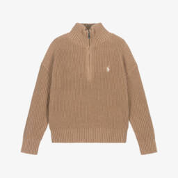 Brown puffer jacket for older girls by Ralph Lauren, combining style with comfort and warmth. It is made in water repellent cotton corduroy and padded in soft down, with a high collar and elasticated trims for a snug and cosy feel. There are useful front pockets, and a full front zip concealed by a popper-fastening flap. The brand's signature Pony logo is embroidered in tonal thread on the chest.