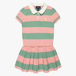 This elegant ivory skirt set for older girls by Ralph Lauren showcases the label's classic style. Part of the brand's tennis-inspired concept, the set is knitted in soft cotton with a lovely cable pattern. The vest top is embroidered with a bold monogram logo and the matching skirt has a striped hem and a comfortable elasticated waist.