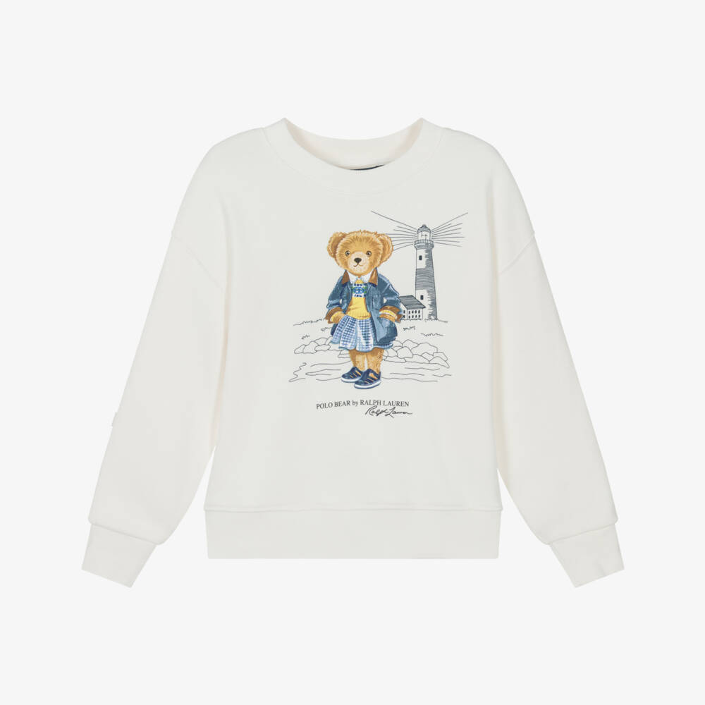 Girls Ivory Cotton Polo Bear Sweatshirt