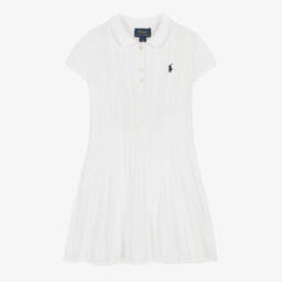 Navy blue sweatshirt dress for older girls by Ralph Lauren, made in a mid-weight cotton blend. This cosy, long-sleeved dress has a soft fleecy inside and ribbed trims, offering both warmth and comfort. The brand's iconic Polo Bear motif can be seen on the front for a distinctive designer finish.