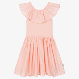 Girls pink checked shirt dress by Ralph Lauren, made from a beautifully soft blend of cotton and linen. This classic style has a button-down front, a smart collar, short puffed sleeves and a full gathered skirt. Smaller sizes are trimmed with pretty ruffles on the collar and cuffs. The signature Pony logo is embroidered on the chest in tonal thread for a subtle branded finish.