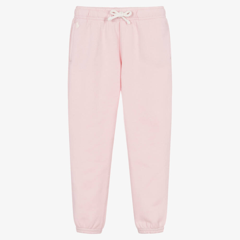 Casual and comfy for girls, these pale pink joggers are by Ralph Lauren. They are made in mid-weight cotton-blend jersey, with a cosy fleecy inside. They have elasticate ankles, side seam pockets, and an elasticated drawstring waist for an ideal fit. The brand's signature pony logo is embroidered at the hip in white. This product contains recycled material.
