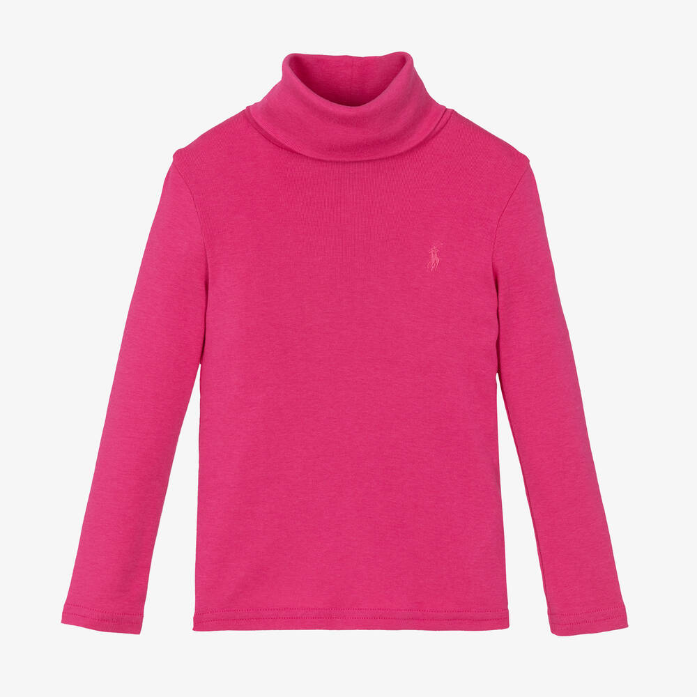 In a vibrant shade of fuchsia pink, this roll neck top for girls is designed by American label, Ralph Lauren. Made in luxuriously soft cotton and modal blend jersey, this top is embroidered with the brand's iconic pony logo on the chest in a tonal pink shade.