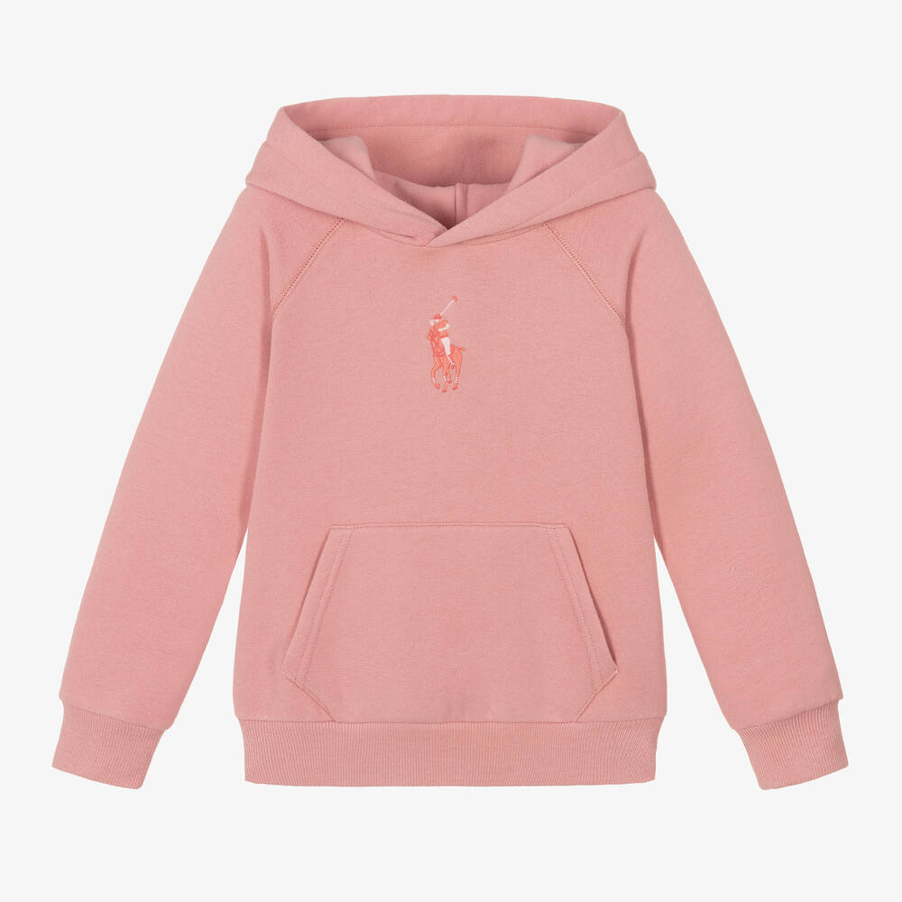 A casual wardrobe staple for girls, this long sleeved hoodie from Ralph Lauren is in a lovely shade of pink. It is made in beautifully soft cotton-blend jersey with a cosy fleece feel inside. Adding a classic finish, it has ribbed trims and a pouch pocket with the American brand's distinctive Big Pony logo embroidered in tonal thread on the front.