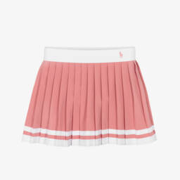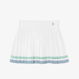 This white pleated skort for girls by Ralph Lauren is a stylish and practical choice for sporting activities. Made in silky soft jersey, it features a contrasting striped hem and a stretchy elasticated waistband, with integrated jersey shorts for added comfort and ease of movement. For a signature finish, the brand's Pony logo is printed in blue on the front.