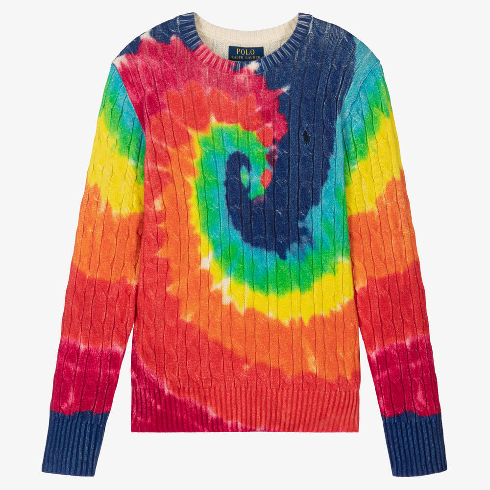 In a vibrant and colourful tie-dye design, this Ralph Lauren jumper for teen boys is inspired by the adult collection. Knitted in soft cotton, swirls of rainbow colours give an artistic update to the brand's iconic cable-knit style. For a designer touch, the signature pony logo is embroidered on the chest in navy blue.