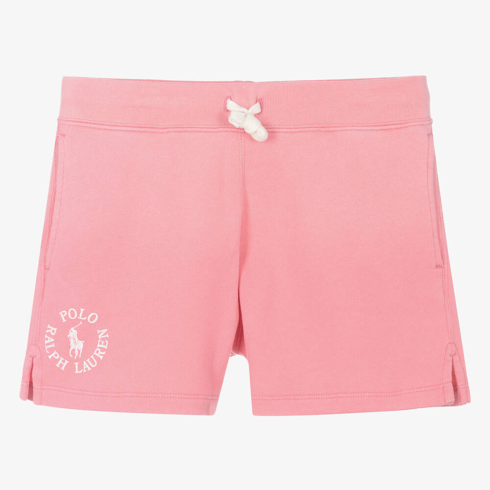 Ideal for a laid-back and relaxed style, these pink shorts for teen girls are by Ralph Lauren. For a distinctive finish, there is a contrasting white Big Pony logo printed on one side. Casually styled, they have a comfortable elasticated drawstring waist, useful side seam pockets, and are made from soft mid-weight cotton jersey.