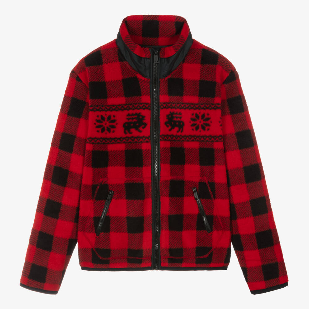 Teen Girls Red Fair Isle Fleece Zip-Up Top