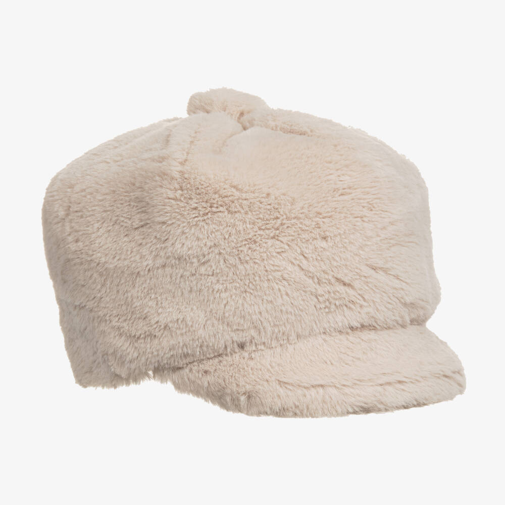 Ivory hat for girls by RaspberryPlum, great for keeping cosy and snuggly when the colder days arrive. Lined in cotton for comfortable wear, it has a cute voluminous top and stylish stiff peak.