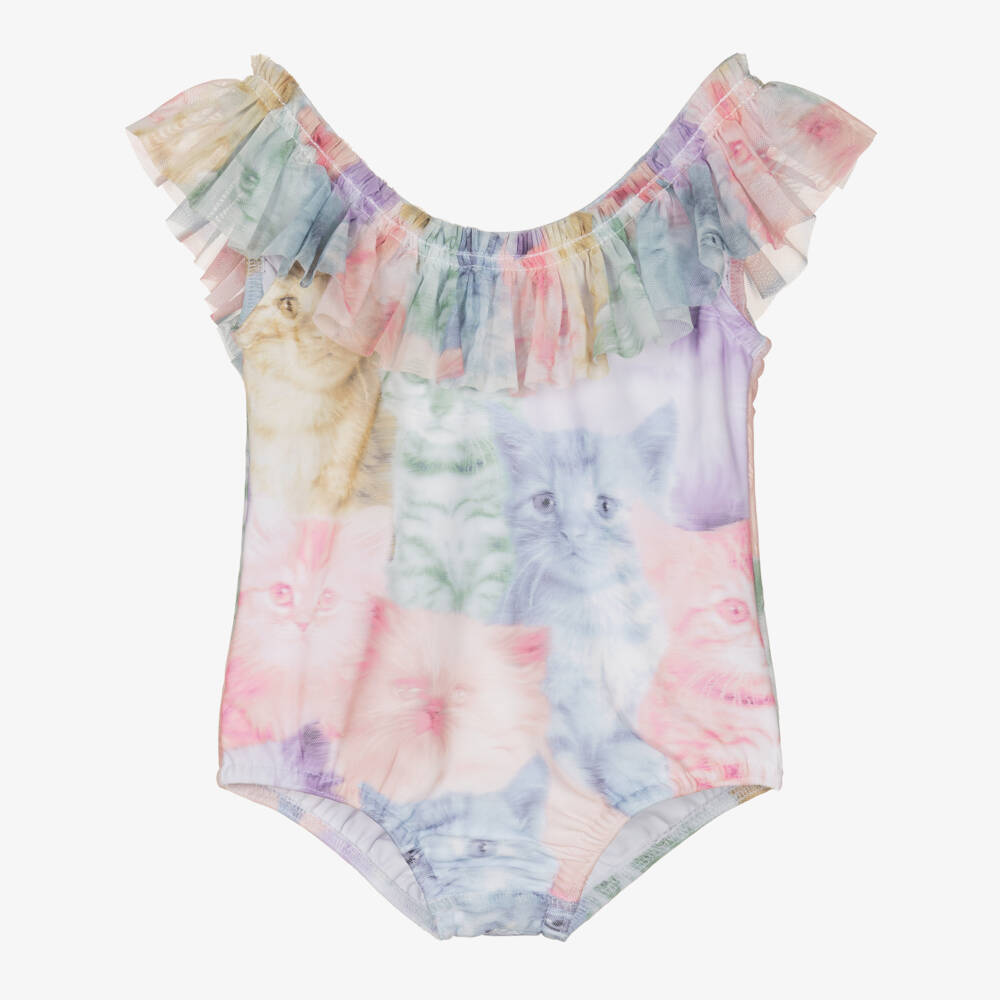 Girls Pastel Kitten Print Tulle Swimsuit
