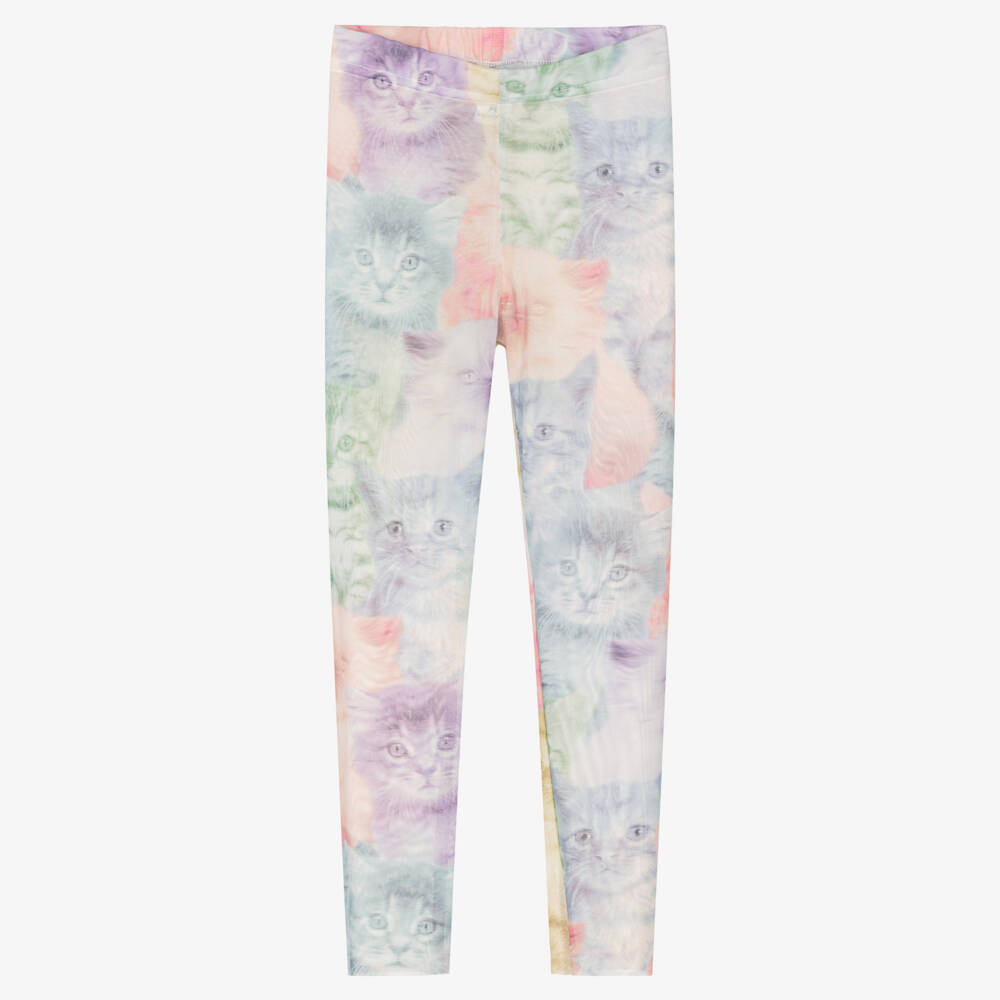 Girls pastel coloured sheer tulle leggings by London-based designer, RaspberryPlum. In shades of pink, purple, green and yellow, the soft feel mesh has an all-over kitten print. They are full-length and have an elasticated waistband for comfort.