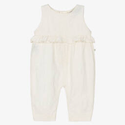Baby Girls Ivory Check Cotton Jumpsuit