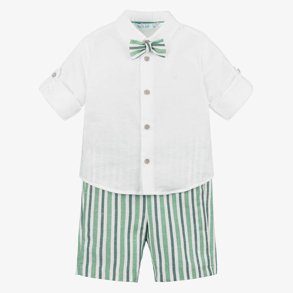 Boys Striped Green Linen Shorts Set