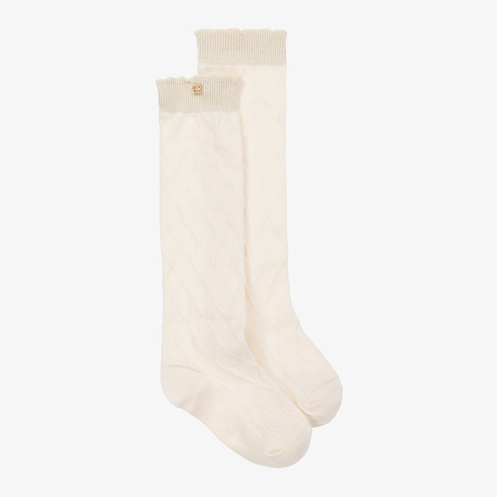 Girls Ivory Cotton Knee-High Socks