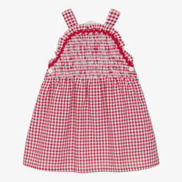Little boys green and white cotton shorts set by Ancar, made exclusively for Childrensalon. Traditionally styled, the lightweight shirt has a Peter Pan collar, green trims and mother-of-pearl buttons on the front. The coordinating shorts have a lightweight lining, turn up hems and are partly elasticated at the waist for comfort. Both pieces button together for a neat and tidy look.