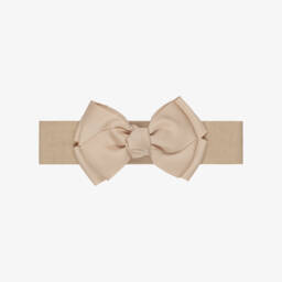 This beige-gold headband by Angel's Face will add a sweet touch to any little girl's outfit. Made in soft, stretchy jersey, it is topped with a charming grosgrain ribbon bow.