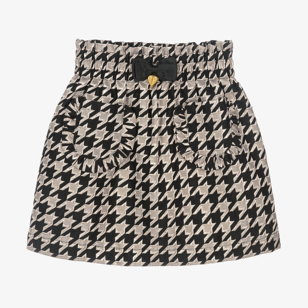 Girls Black & Ivory Houndstooth Cotton Skirt