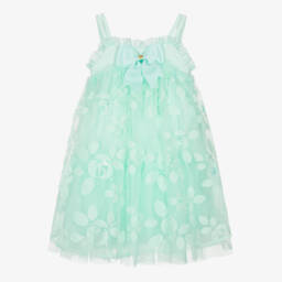 Прекрасное платье мятного цвета для девочек от Angel's Face идеально подходит для особых случаев. Изготовлено из мягкого хлопкового трикотажа с слоями нежного тюля, украшено аппликацией в виде листьев с вышивкой и блестящими пайетками. Эластичное по верху, лиф с узкими бретелями и красивыми оборками. Фирменный бант из гросгрейна и золотистый сердечко-шарм придают элегантный вид.