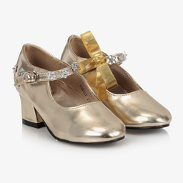 Pretty, red glitter shoes for girls by Angel's Face, made in soft, faux leather. Ideal for special occasions, the bar strap fastens with a gold heart-shaped buckle, trimmed in sparkling diamantés. They have traditional rounded toes and a 3cm high block heel. They have a comfortable, cushioned faux leather inner sole and non-slip rubber soles which offer grip on slippery surfaces.