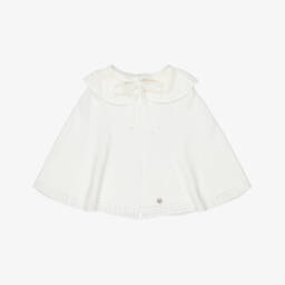 Эта кремовая накидка для девочек от Artesanía Granlei - роскошное дополнение к гардеробу. Эта элегантная модель из мягкого искусственного меха идеально подходит для наслоения поверх платья для особого случая. Полностью на подкладке для комфорта, имеет округлый воротник и застегивается спереди на крючок и атласную ленту.