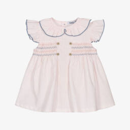 A traditionally-styled red dress for baby girls by Spanish brand Babidu. It has ruffles over the shoulder, with pretty white crochet lace trims. Made in super soft velvet, it has a lightweight voile lining for added comfort, with wooden buttons for fastening on the back. This lovely dress comes with matching knickers to complete the classic look.