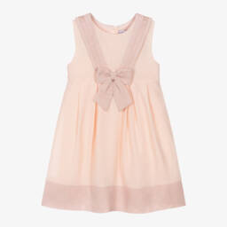 Exclusive to Childrensalon, an ivory dress for girls by British heritage brand Beatrice & George, with a beige sailor collar for a nautical look. Made in a cool, lightweight linen and viscose blend, the collar has navy blue and white striped grosgrain trims and a large, fixed bow. The box-pleated skirt has a coordinating beige hemline.