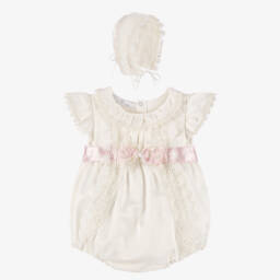 An adorable white satin shortie and hat set by Beau KiD for baby boys. Ideal for a special occasion, the shortie has a loose fit with pleating around the high waist and pintuck pleating on the chest and cuffs. The satin hat has a matching pintuck brim and an elasticated chin strap.
