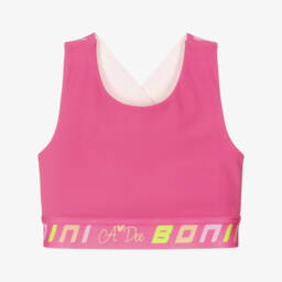 Pale pink T-shirt for girls by Billieblush, made in soft cotton jersey. It has a gently ribbed neckline and seamless short sleeves for a cool, relaxed look. Neon gummy bears are stitched on the front, giving this slogan tee a vibrant pop of colour.