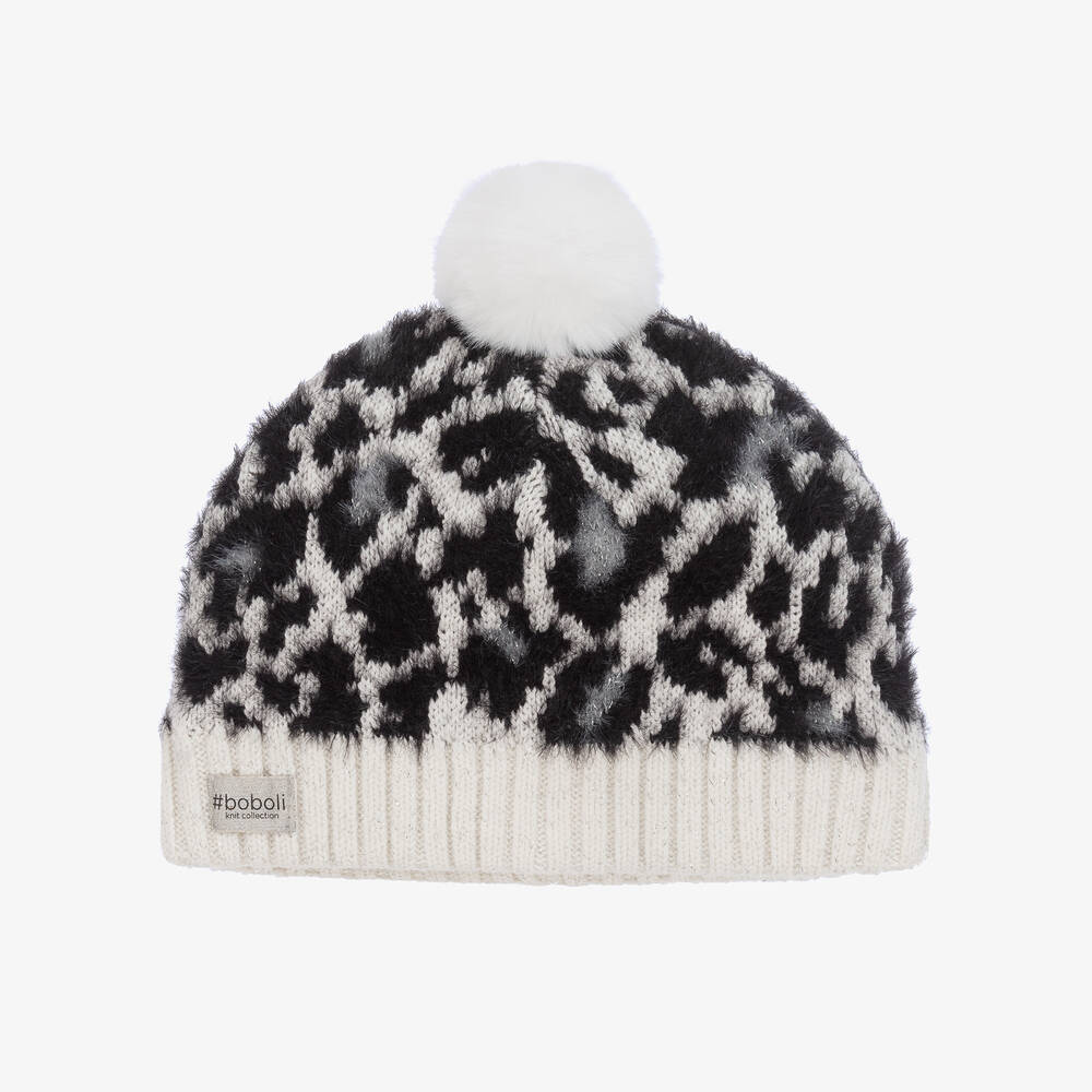 Черно-белая шапка для девочек от испанского бренда Boboli с абстрактным животным узором. Связана из мягкой смеси хлопка, вискозы и шерсти, эта уютная шапка имеет приятную на ощупь подкладку из флиса для тепла. Сверху забавный белый помпон, а спереди блестящий ребристый край с серебристо-черной нашивкой логотипа.
