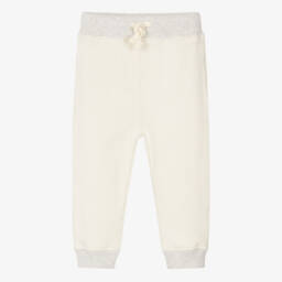 Soft and cosy, these fleece charcoal grey joggers for little boys are by Bonpoint. Complete with stretchy ribbed cuffs and a matching drawstring waist, they are comfortable and easy to wear. There is a patch pocket on the back with a tonal embroidered logo for a subtle designer finish.
