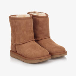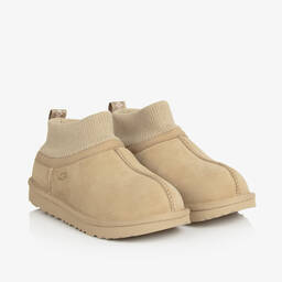 Gold ankle boots for girls by French brand Bonpoint, made in soft and supple leather with a pearlescent sheen. Ideal for casual looks or more formal occasions, these round-toe boots have a curved panel on the front and a zip on the back to help get them on and off. Lined in comfortable leather, they have a gently cushioned insole and a rubber sole with a small tan brown heel.