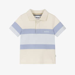 Sporty tan brown polo shirt for teen boys by BOSS, as seen in the main collection. Made from soft cotton piqué, this colour block design has brown, ivory, and black panels, with a rubber logo print on the chest.