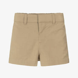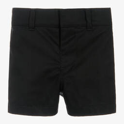 Black twill shorts for baby boys by luxury British brand Burberry, made in a soft cotton blend. Fastening with a simple hook, they have an elasticated waistband for comfort. The designer's Equestrian Knight Design, embroidered in tonal thread on the back pocket, adds a discreet branded touch.
