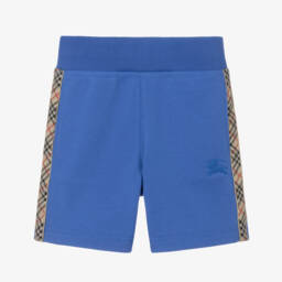 Black shorts for baby boys by luxury British brand Burberry, making an instant statement with panels of the designer's beige Vintage microcheck. They are made in comfortable sweatshirt jersey with red piping and have an elasticated waist with a useful drawstring for a good fit. There are useful concealed pockets on the front and a patch pocket around the back.