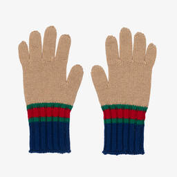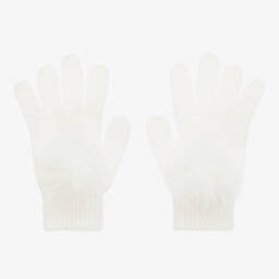 Delightfully soft and cosy beige gloves for girls by Burberry, beautifully knitted in a wool and cashmere blend for luxurious comfort. They have a turned-up cuff and a sweet, knitted bow in the Burberry check for a subtle yet iconic finishing touch.