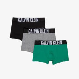 Серые и синие трусы-боксеры для мальчиков от Calvin Klein со стильным черным поясом с логотипом. Эти боксеры из мягкого, эластичного хлопкового трикотажа обеспечивают плотную, но комфортную посадку.